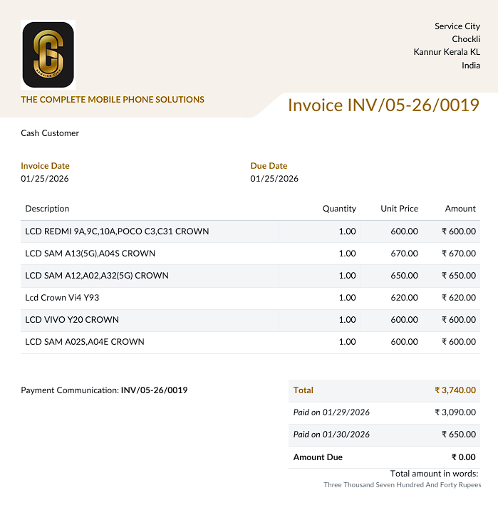 OdooMeter enables instant WhatsApp bill sharing, allowing Service City to send invoices directly to customers after billing.